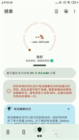 点击健康选项,能得到一些充电建议,这些建议有助于保护电池健康。