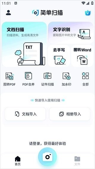 简单扫描是一款专业实用的手机扫描工具,能轻松扫描身份证、护照等各类纸质文档,还可快速提取文字内容,省去手动输入的繁琐,让用户使用起来十分便捷。这款智能扫描软件集文件扫描、文字识别、图像处理、翻译、格式转换等功能于一体,支持拍照或导入文档与图片,生成的文件格式包括图片、PDF和Office格式。