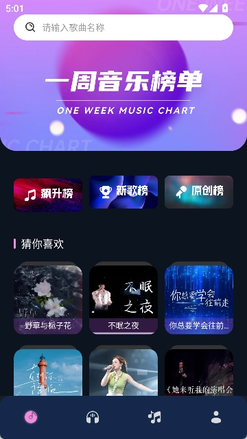 首页可搜索查看热门音乐榜单