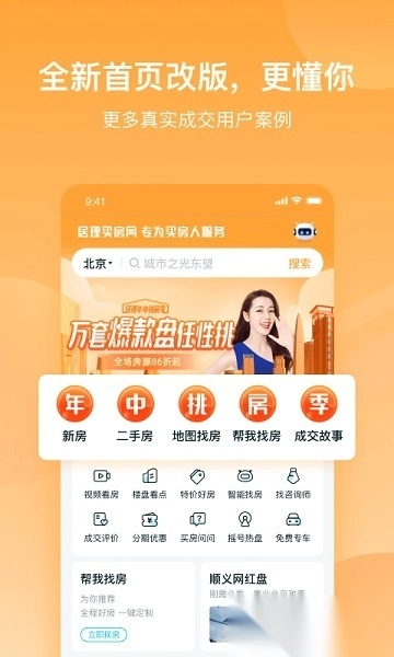 覆盖全城房源,呈现真实客户评价;支持多维度智能搜索,提供个性化新房推荐。