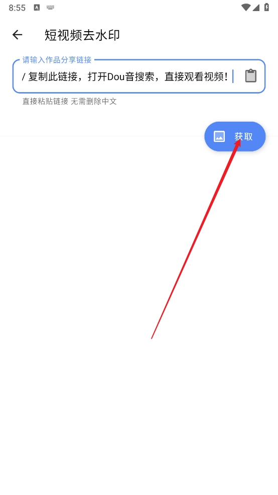 然后粘贴所需解析的短视频连接,点击"获取"即可。