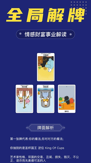 深度占卜:用户可挑选深度牌阵来开展占卜,针对具体问题进行详尽的剖析与阐释。