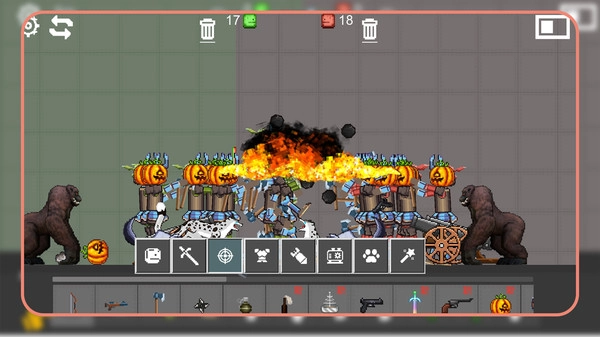 战斗时能在底部工具栏挑选武器和单位,巧妙组合各类道具与角色,排兵布阵以增强整体战斗成效。