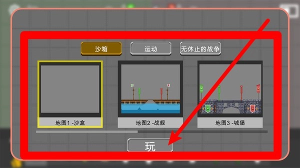 玩家能够在界面里挑选沙盒、战舰或者城堡这类不同的地图,点击下方的按钮就能进入其中,开启紧张刺激的战斗。