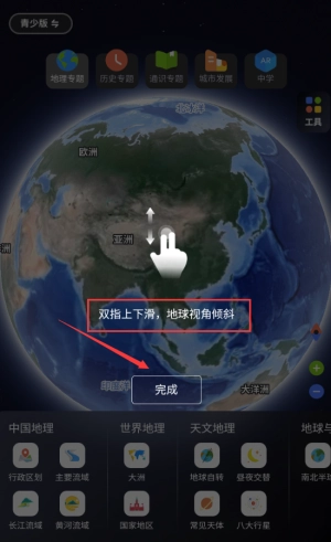 双指上下滑动红框,调整地球仪观察视角。