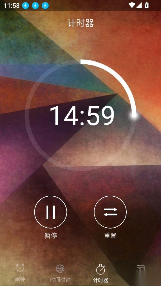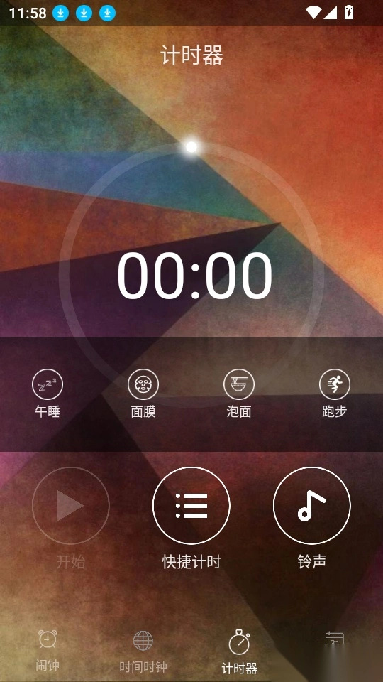 接下来进入软件的闹钟界面,在底部菜单栏里点击“计时器”按钮,以此推进到下一步操作。
