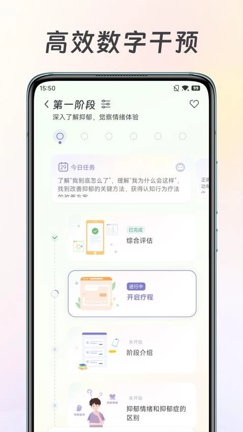 这款软件配备了数字化干预功能,可助你开展医学层面的数字干预,让你能随时感知自身的情绪波动。