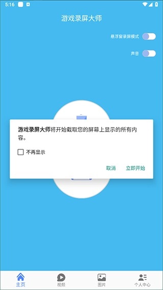 你可以根据自身需求选择【竖屏录屏】或【横屏录屏】功能,在授予软件所需权限后,点击【立即开始】按钮就能启动录制了。