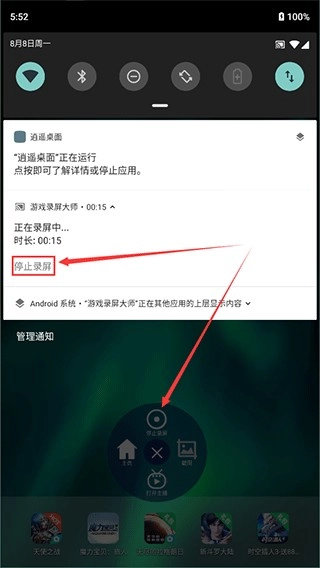 录制结束后,你可以通过悬浮窗或者状态栏上的【停止录屏】按钮来结束录屏操作。