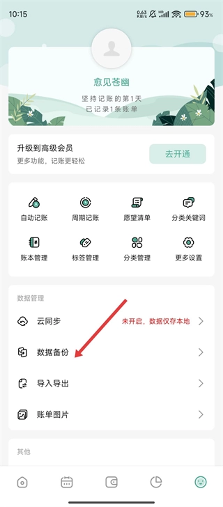 打开一木记账App后,我们可以点击底部右侧的笑脸图标,进入功能更丰富的界面。