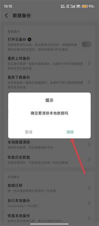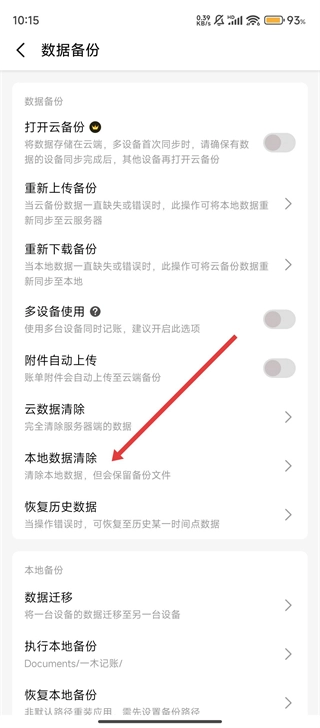 进入数据备份页面后,我们选择【本地数据清除】选项,准备执行清空操作。
