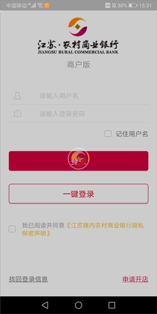 打开农商行收银宝,使用商户账号登录系统。