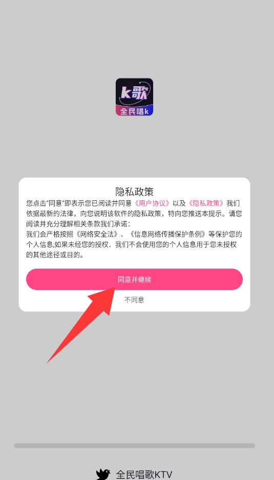 点击隐私政策里的同意并继续。