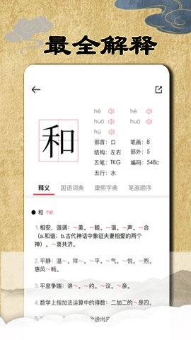 康熙字典是在康熙字典的基础上专为古汉语爱好者设计的汉字词典查询软件,具有简洁、快速、准确、详细的特点,支持拍照识字。