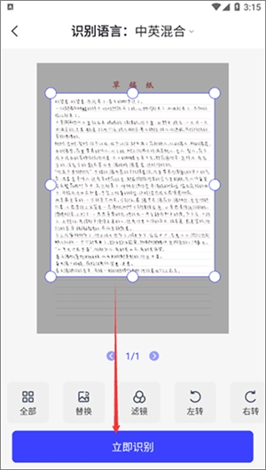 调整选取框的四条边,确保需要识别的内容都在框内,然后点击立即识别。