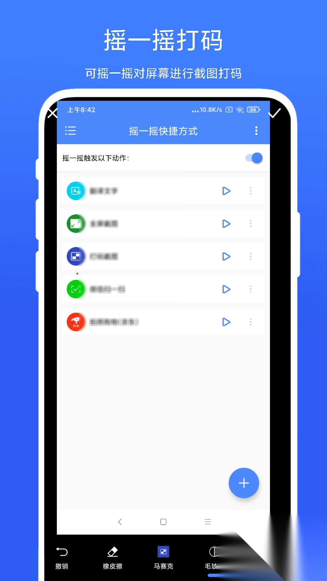它具备摇一摇快速截图的功能,截图完成后还能直接进行打码操作,并且提供了多种不同的打码方式。