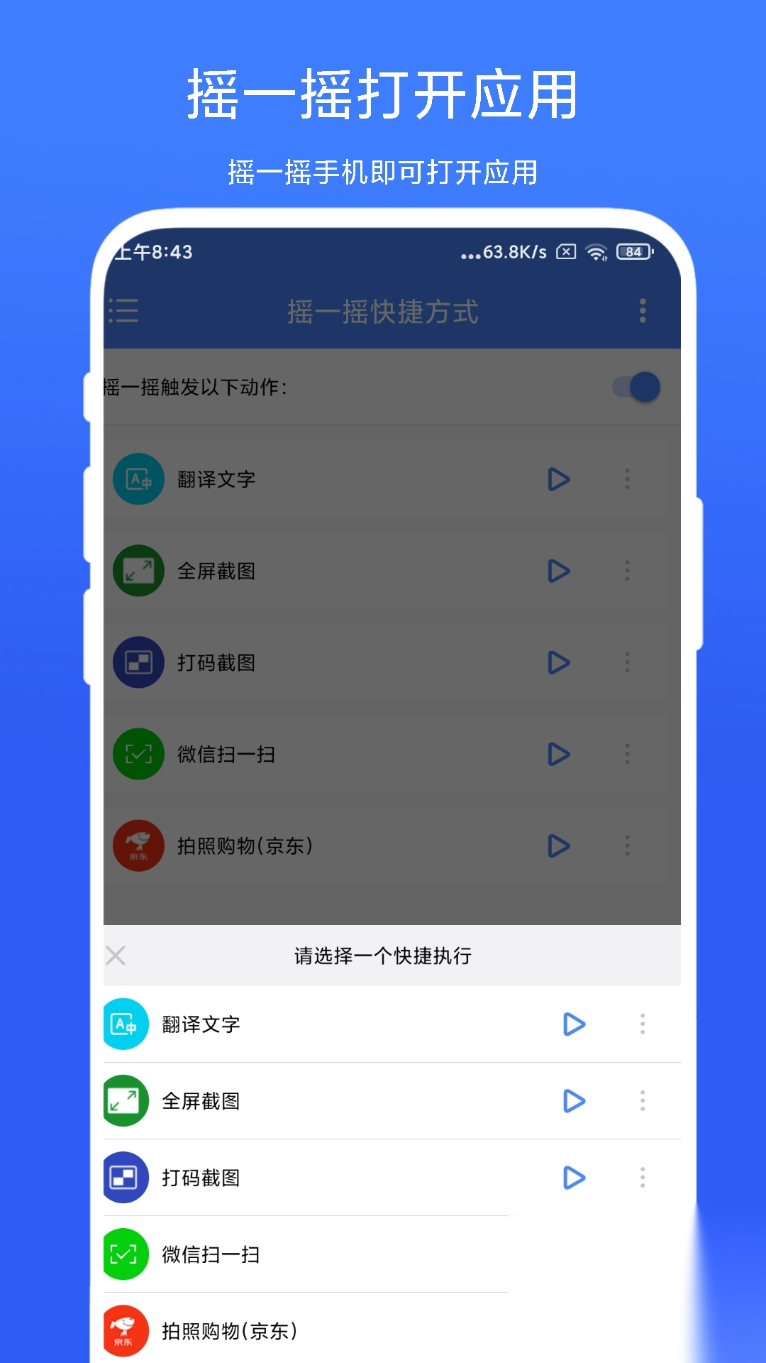 不用打开具体应用,摇一摇就能直接触发对应功能,省去多余操作步骤,让手机使用更高效。