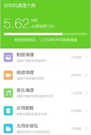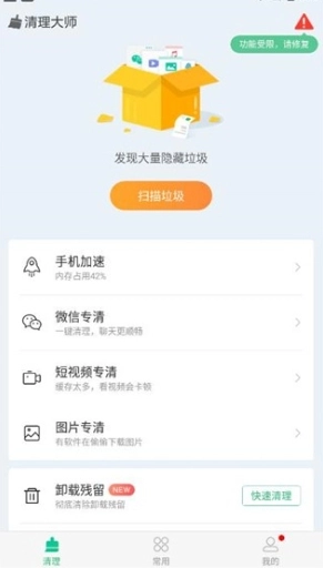 切换到“常用”板块,就能开展相册清理、视频清理、音乐清理、应用卸载以及无用安装包清理等操作,以此释放手机存储空间。
