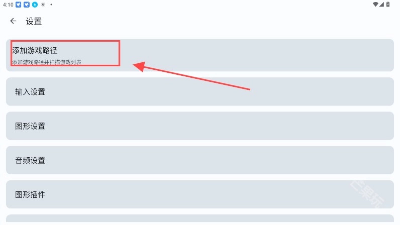 在设置界面中选中添加游戏路径进入