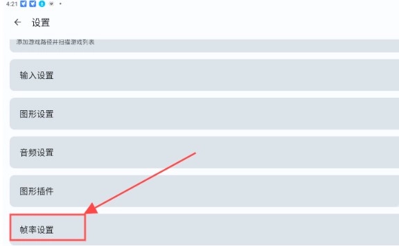 先在设置界面中选中帧率设置