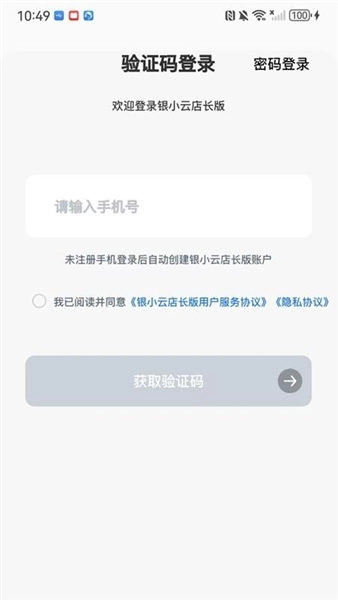 把银小云店长版安装到手机里,输入手机号并获取验证码就能登录了。