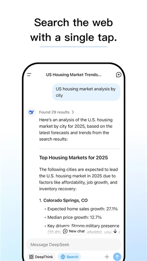 DeepSeek国际版具备扎实的专业功底与出色的推理能力,用户能够通过轻松的对话与它实时互动,从而获取更精准的解答,体验其强大的语言理解与生成能力所带来的便捷。