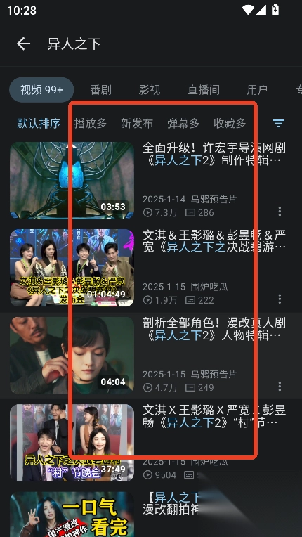 迅速为大家获取检索结果,挑选心仪的视频进入。