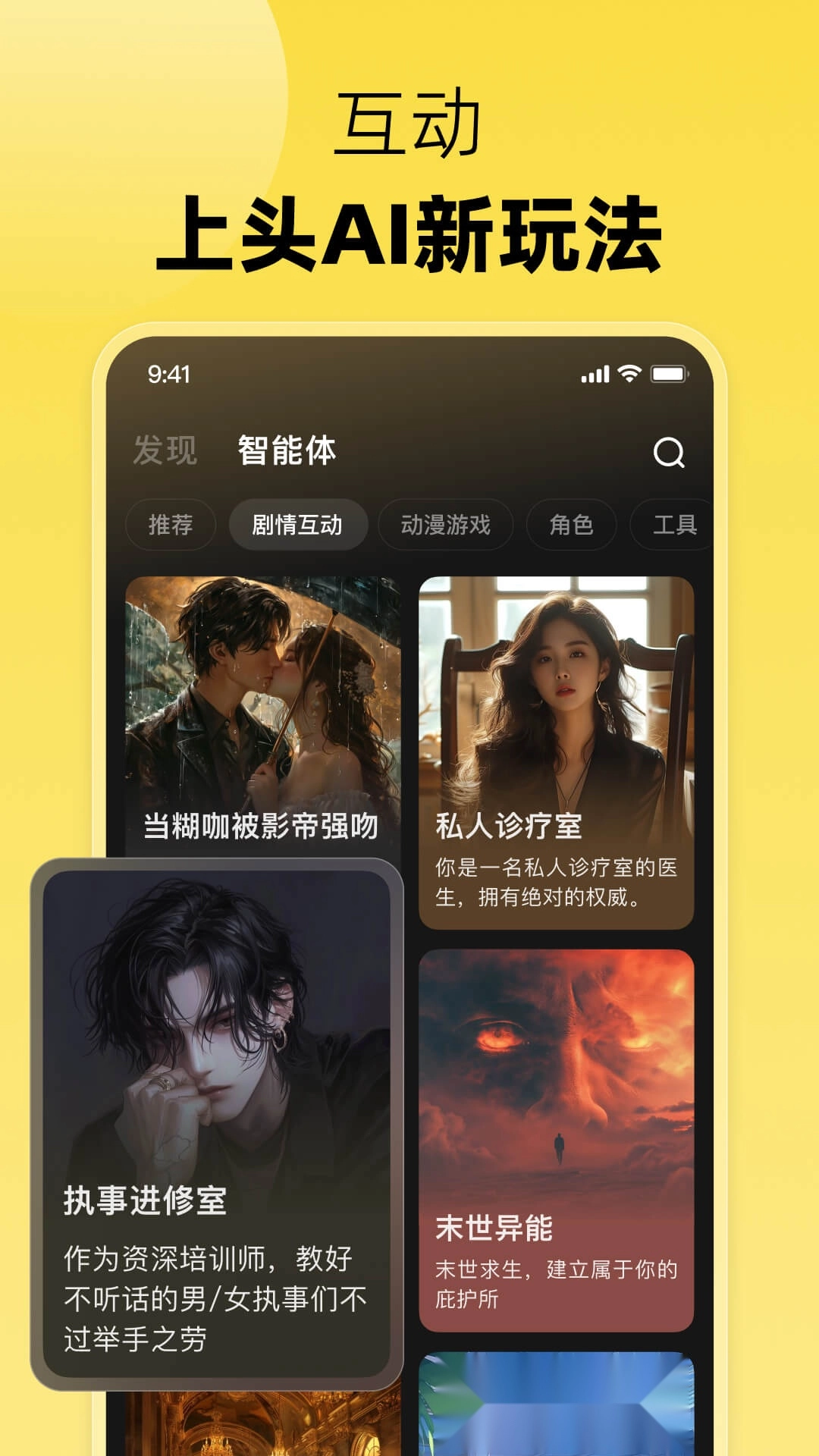 1、打开这款软件,在软件下方就可以看到【创建】板块,点击进入其中,创建自己专属的AI角色;