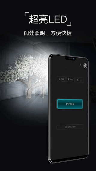 打开应用后,点击界面上的“Power”按钮,就能启动手电筒功能了。