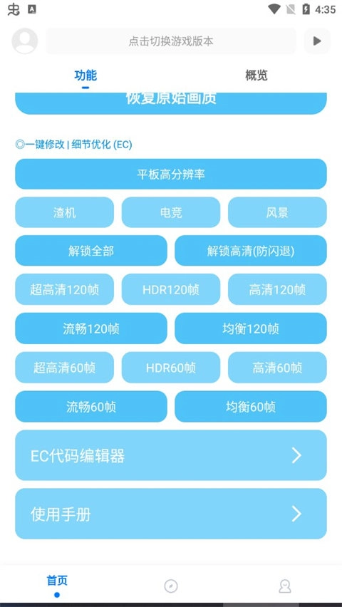 殇痕画质助手是一款能够对多款游戏画质进行修改的辅助工具,支持自定义代码、整理编辑功能,还能一键完成修改编辑操作,即使是配置较低的设备也能使用,可将画质调整为高清120帧,并且采用了十分直观的修改方式,感兴趣的朋友不妨来试试。