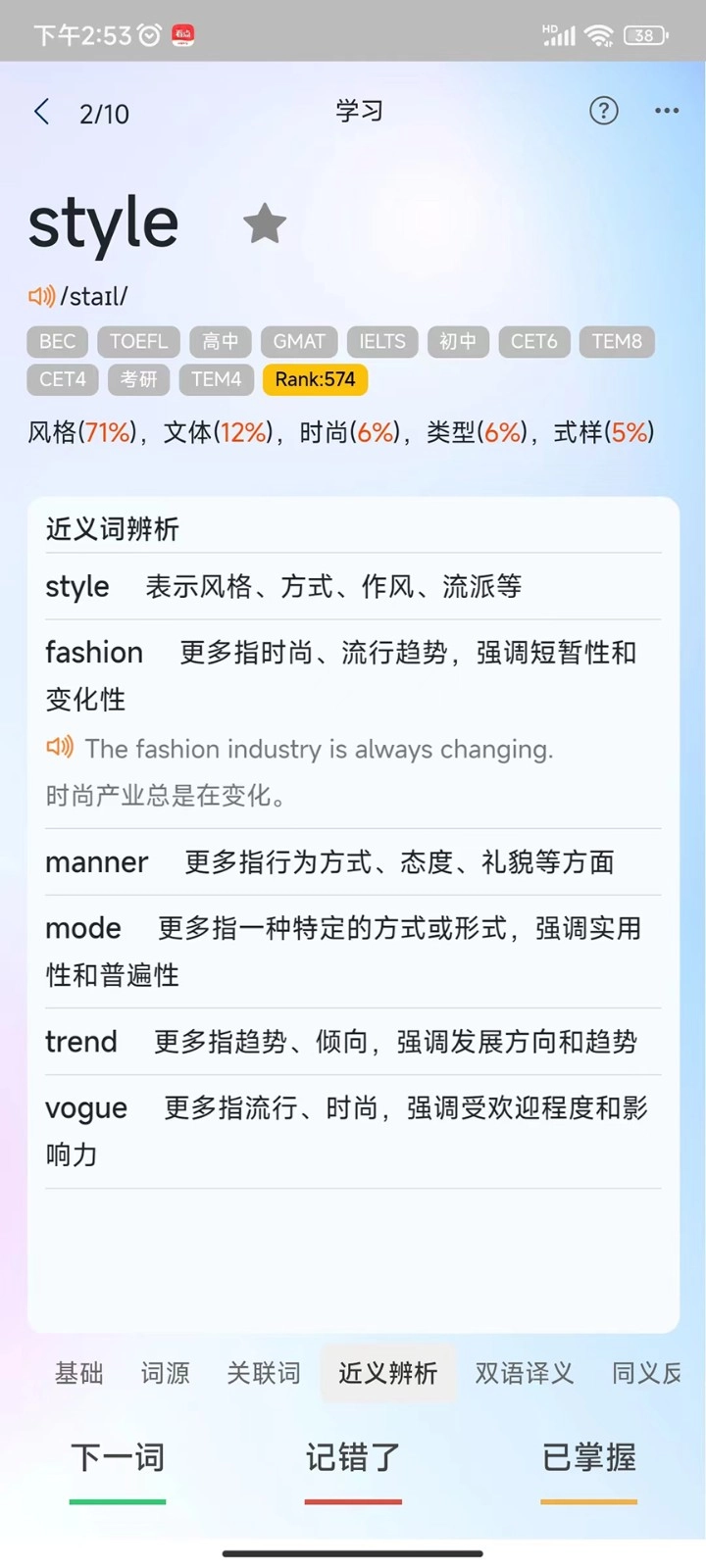 提升记忆效果:该应用配备了多样化的记忆检测手段,能助力用户更高效地掌握单词。