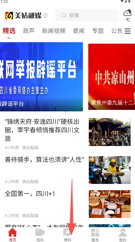 进入首页后,点击底部导航栏里的“爆料”按钮,即可进入社区页面。
