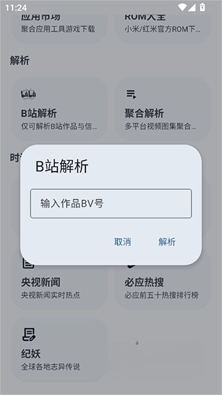 打开应用后,在功能或工具页面找到并点击所需的工具,例如B站视频解析功能。