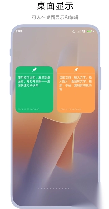 用户创建新笔记后,只需简单设置,就能把笔记以小窗口或卡片的形式固定在手机桌面上。