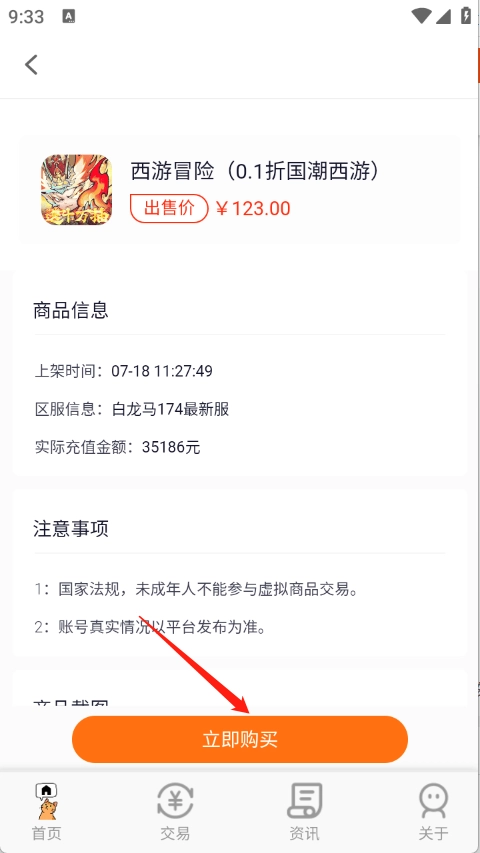 点开喜欢的游戏账号,点击“立即购买”。