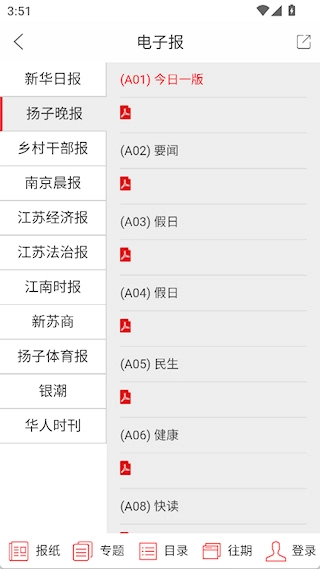 通过底部的报纸、目录等按钮查看具体内容