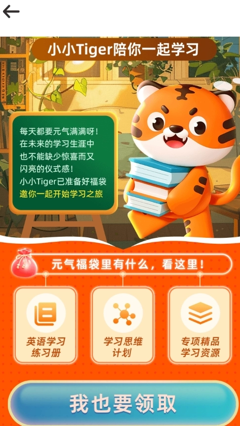 打开Tigerschool软件的主页后,点击页面下方的拓展学习功能入口。