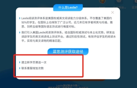 若想在软件里完成蓝思测试,可借助创建新账号或者联系客服的方式来增加测试次数。