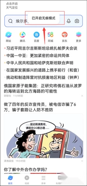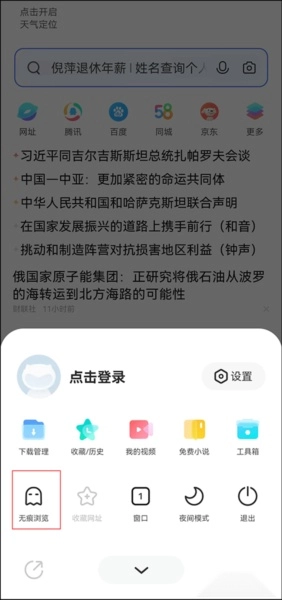在打开的快捷功能面板里,找到并启用【无痕浏览】这一隐私模式选项。