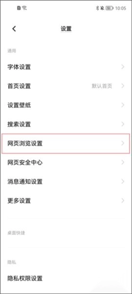 在系统设置界面里,找到“网页浏览设置”模块并点击进入,即可进行页面显示参数的配置操作。