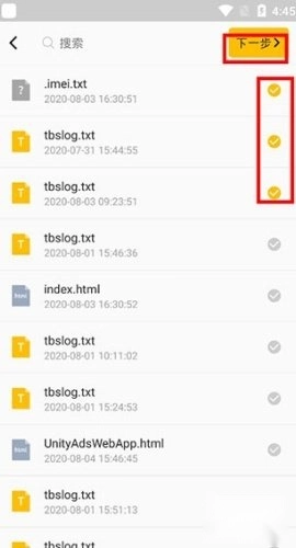 然后,勾选想要压缩的文件,并点击“下一步”继续。