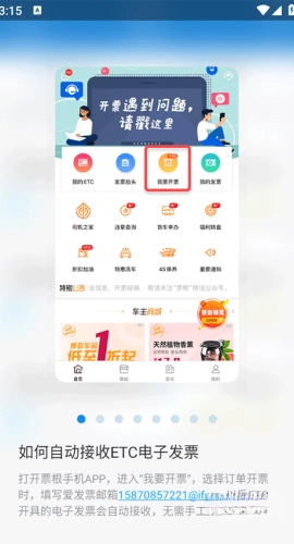 例如,若选择ETC平台,在该功能界面点击“去开票”功能,导入订单后即可开具发票。