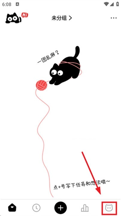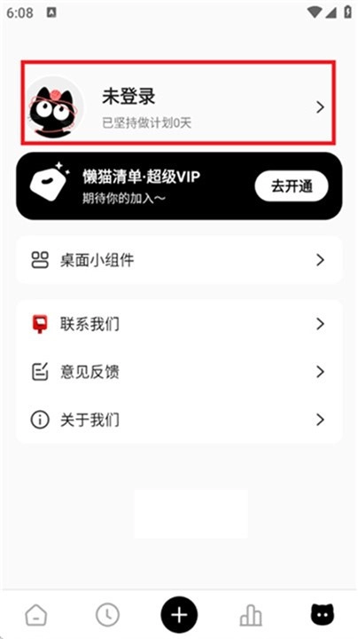 打开懒猫清单的主界面后,找到右下角的个人中心图标,点击该图标就能进入个人中心页面。