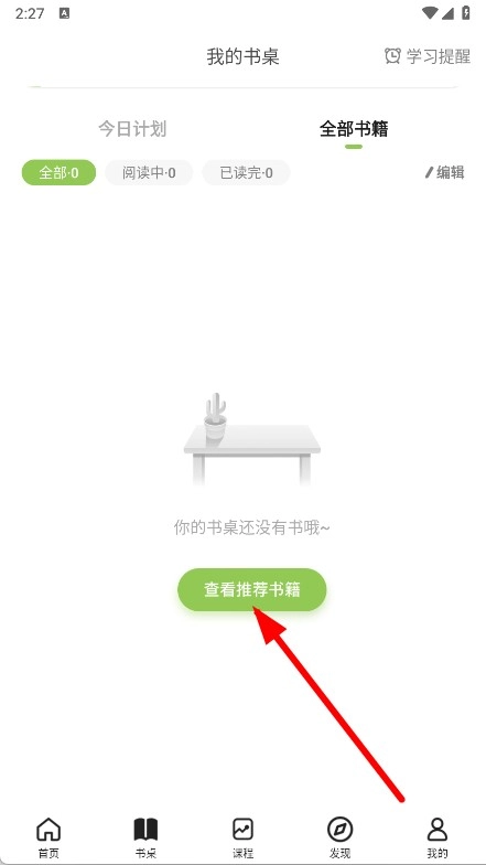 进入我的书桌页面后,点击查看推荐书籍按钮。